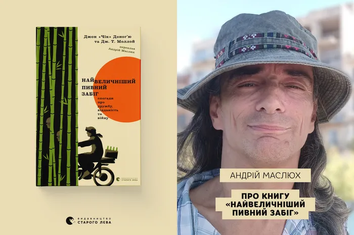 Книга Джона «Чіка» Доног’ю та Дж.Т.Моллой «Найвеличніший пивний забіг» розповідає неймовірну історію часів війни у В’єтнамі. Головний герой, колишній військовий Чік, вирушає до В’єтнаму, щоб зустрітися із хлопцями з рідного Нью-Йорка й привезти їм пива як символ того, що про них пам’ятають. Українською цей пригодницький роман на основі реальних подій переклав Андрій Маслюх, який ділиться враженнями про саму книгу й роботу над нею.