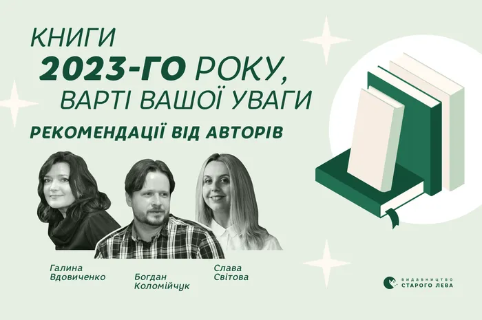 Старий Лев ділиться новою порцією книжкових порад від авторів Видавництва. У підбірці ви зустрінете книги, що побачили світ у 2023 році (але й не лише), художню літературу та нон-фікшн видання – від Богдана Коломійчука, Галини Вдовиченко та Слави Світової.