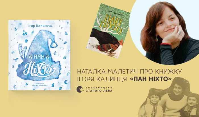 От-от із друкарні приїде казкова повість легендарного письменника, дисидента Ігоря Калинця. На цій книжці виросло не одне покоління читайликів і зараз «Пан Ніхто» повертається на стелажі книгарень і бібліотек в новому оформленні Людмили Стецькович. Зимова історія про пана Ніхто, що поселився у загубленій рукавичці, а ще про синичку Ичку, сороку Року, горобця Беця і двох хлопців Янчика і Арчика подарує відчуття свята. Якнайкраще пасує для родинних читань, адже крім цікавого сюжету, веселої гри слів, казка пронизана символізмом. Редакторка відділу дитячої літератури «Видавництва Старого Лева» Наталка Малетич розповідає про свою роботу над проєктом і прототипів історії.