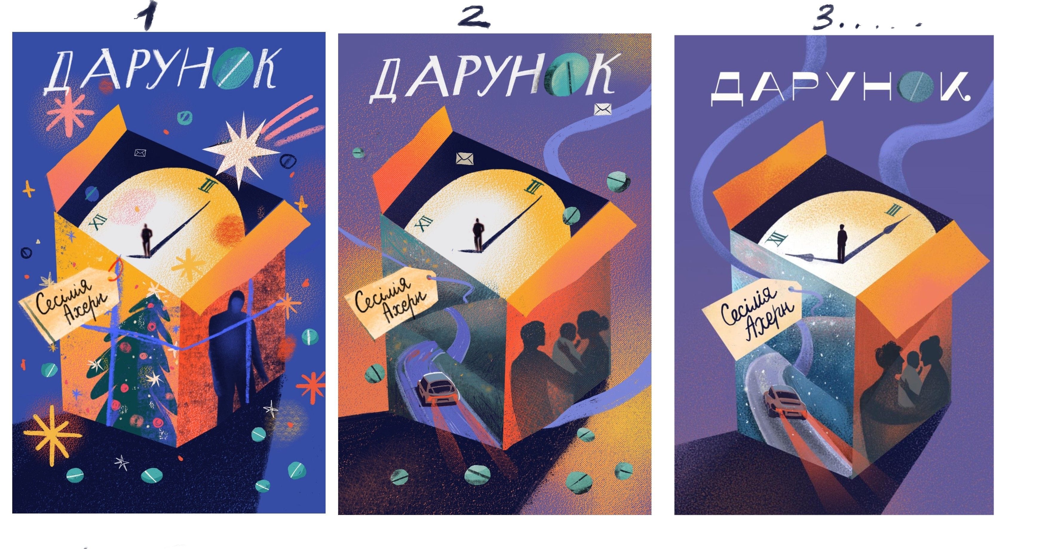 Звісно, отримавши назву твору, одразу з’являється перша ідея – це подарунок, обгортковий папір… Проте буквально дублювати назву візуально мені здалося надто примітивним рішенням. Водночас саме образ подарунка частково став основою для другої ідеї, яка згодом трансформувалася у фінальний макет.
