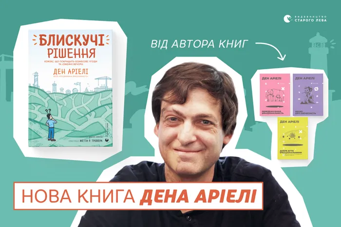 «Видавництво Старого Лева» презентує комікс Дена Аріелі — автора бестселерів «Передбачувана ірраціональність», «Добре бути ірраціональними» та «Чесно про (не)чесність», поведінкового економіста — «Блискучі рішення. Комікс, що покращить бізнесові угоди та сімейні вечори». Як вибрати справді хороший подарунок? Як знайти баланс між щирістю і вигодою в спілкуванні? Як домовлятися з колегами і керівниками, аби всі залишилися задоволені? Як мотивувати себе працювати або навпаки, не згорати на роботі? Як розпізнати, які норми — ринкові чи соціальні — діють у конкретному моменті, і чому їх плутанина часто стає джерелом проблем? Це книга для підлітків, батьків, керівників, підприємців і всіх, хто хоче краще зрозуміти себе, людей навколо і щоденні процеси прийняття рішень.