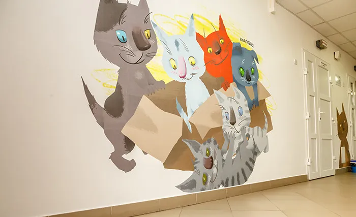 Хвостаті бешкетники з книжки Галини Вдовиченко «36 і 6 котів», а саме з ілюстрацій Наталки Гайди, оселилися на стінах відділення.