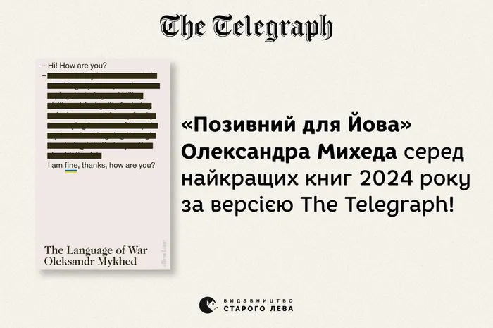 Британське видання The Telegraph опублікувало список найкращих книжок 2024 року, до якого увійшла книжка Олександра Михеда "The Language of War" («Позивний для Йова. Хроніки вторгнення»), що посіла 12 місце. До переліку також потрапили ще дві роботи українських авторів: "Chernobyl Roulette" Сергія Плохія та "The Ukraine" Артема Чапая. Ці видання отримали міжнародне визнання, а їхні автори представили світу історії, що відкривають глибше розуміння України та її сучасної історії.