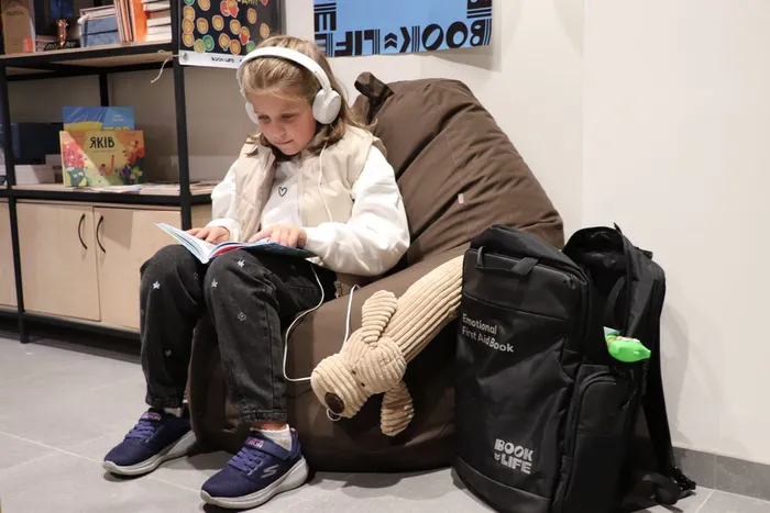 У кожному з таких затишних куточків діти знайдуть зручне крісло-грушу, рюкзак, повен книжок, плеєр з навушниками, м’яку іграшку для обіймів, стікери з емоціями та листівки.