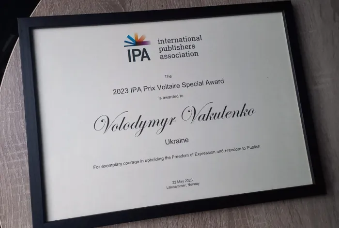 Українського письменника, громадського діяча, автора «Татусевої книги» Володимира Вакуленка, вбитого російськими окупантами, посмертно нагородили спеціальною відзнакою IPA Prix Voltaire Award 2023. Нагорода Prix Voltaire посмертно вручається Міжнародною асоціацією видавців для того, щоб підкреслити виняткову боротьбу за свободу самовираження лауреата/лауреатки та підкреслити, яким чином його або її змусили мовчати.