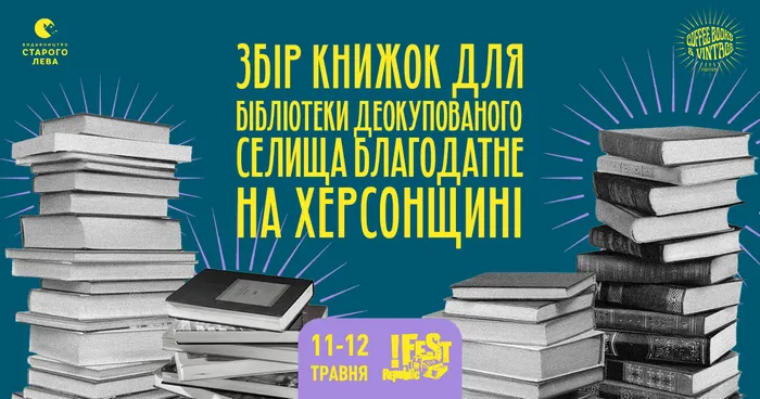 Село Благодатне Чорнобаївської сільської ради Херсонської області 9 місяців було у окупації. Збройні Сили України звільнили його у листопаді 2022 року. І саме селище, і бібліотека були пошкоджені та розграбовані руснею, а зараз поступово відбудовуються силами місцевих. І їм потрібна наша допомога у наповненні бібліотеки якісними українськими книжками. Саме тому ми оголошуємо для Благодатнівської сільської бібліотеки Чорнобаївської сільської ради Херсонської області збір книжок на Coffee, Books & Vintage #4. Тож запрошуємо брати книги з собою, або придбати їх під час події на стендах видавництв. Coffee, Books & Vintage #4 відбудеться у Львові на території !FESTrepublic (вул. Старознесенська, 24-26) – 11-12 травня.